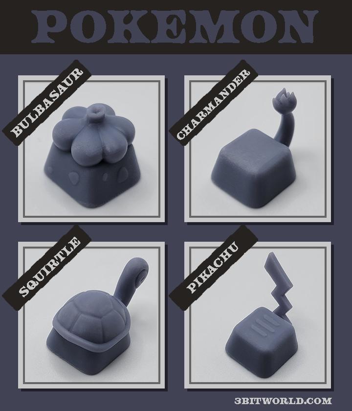 Pokemon Starters Keycap Set | Unpainted Resin Artisan Caps | Cherry MX | Charmander, Bulbasaur, Squirtle, Pikachu
